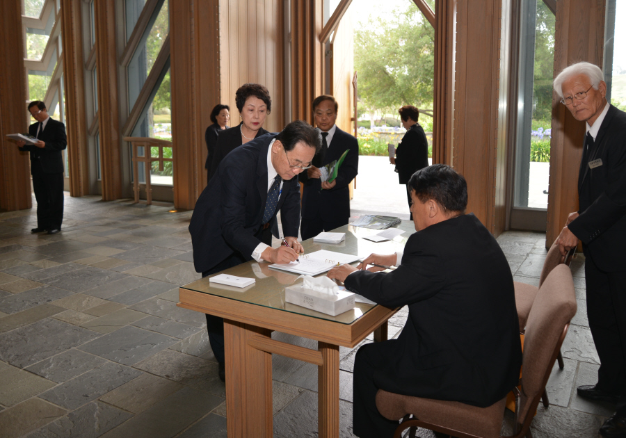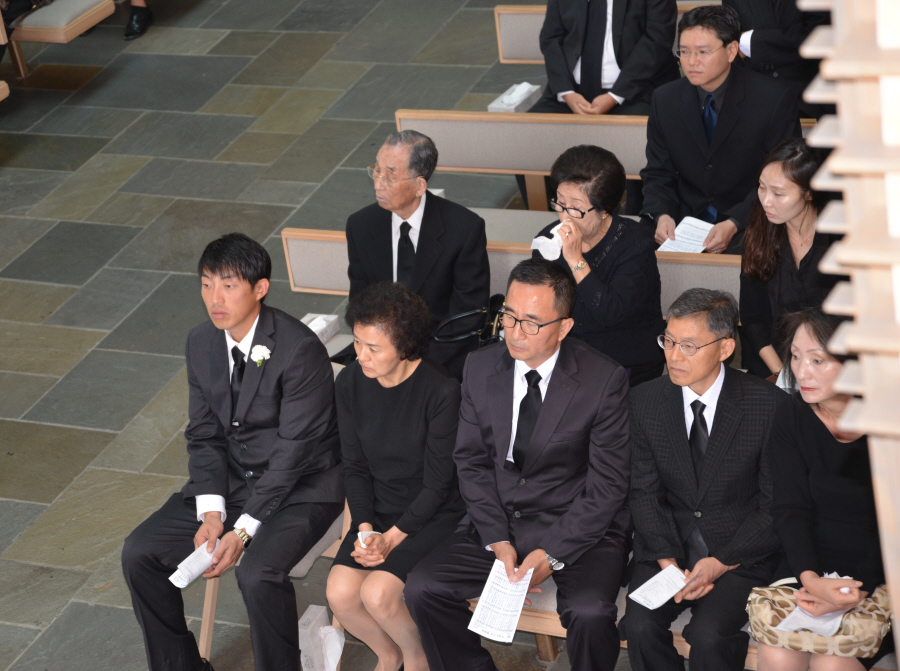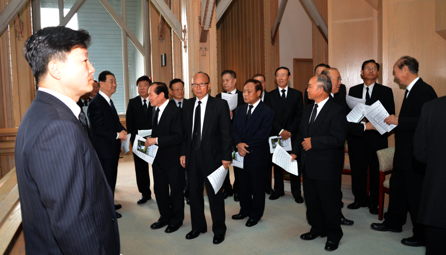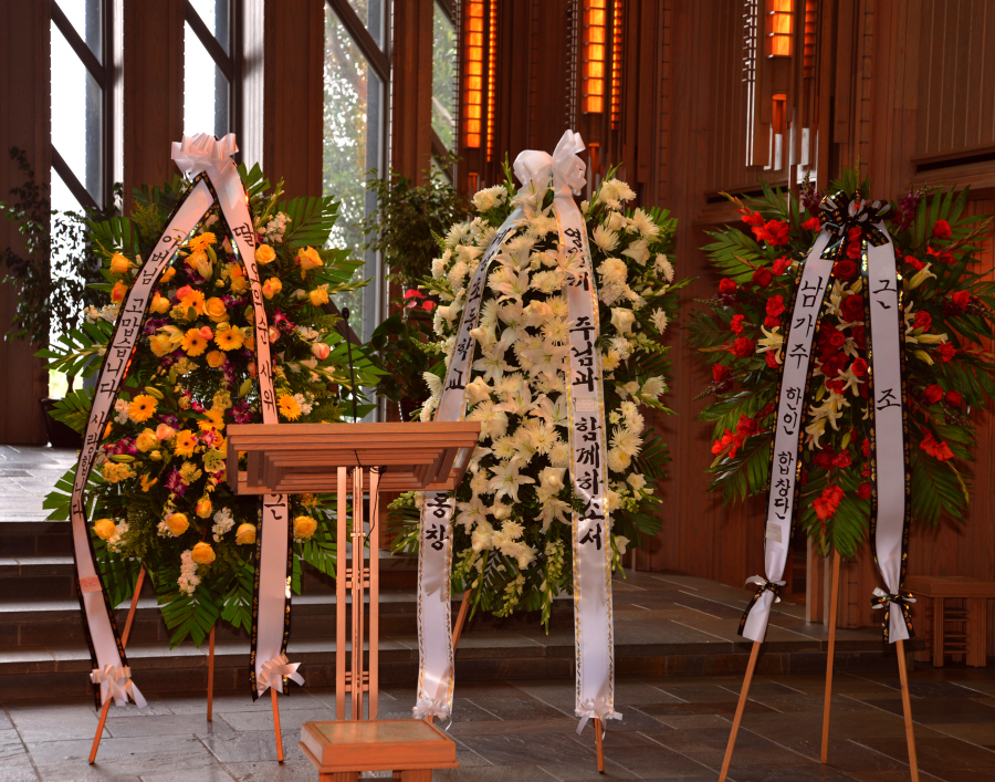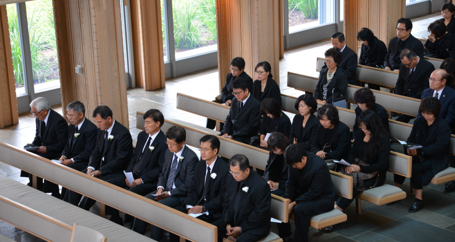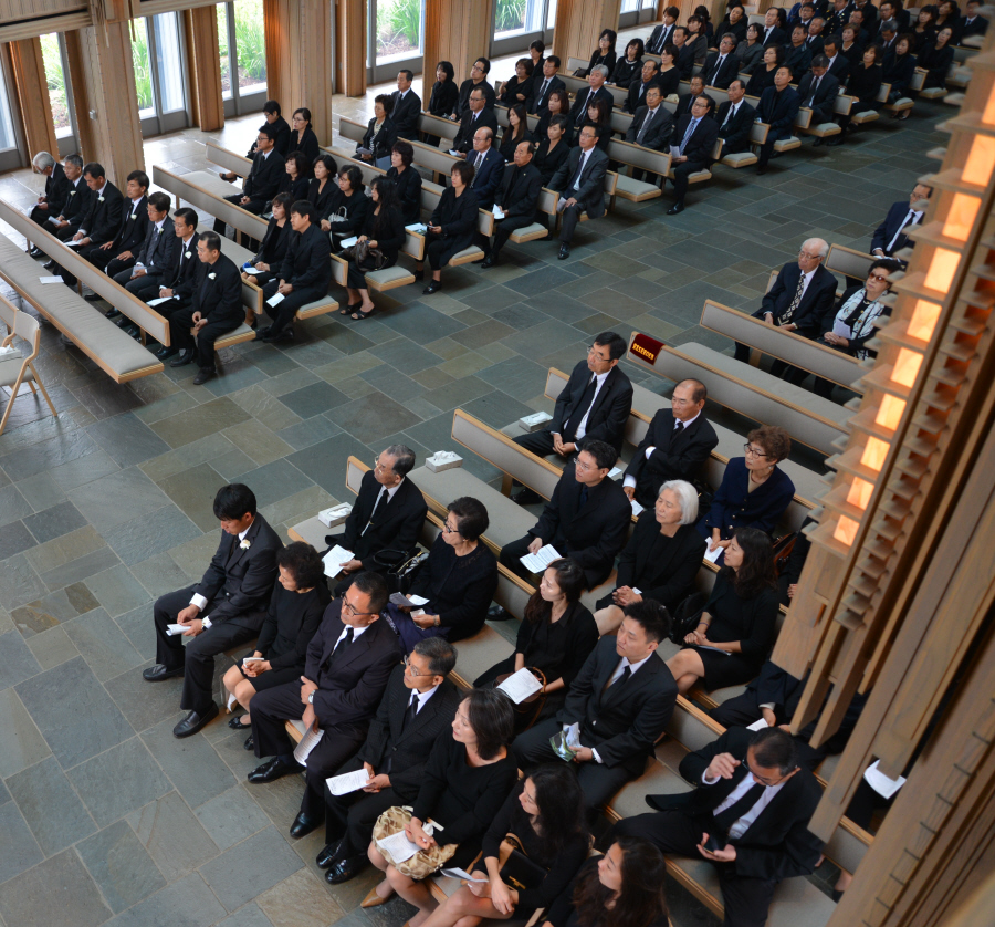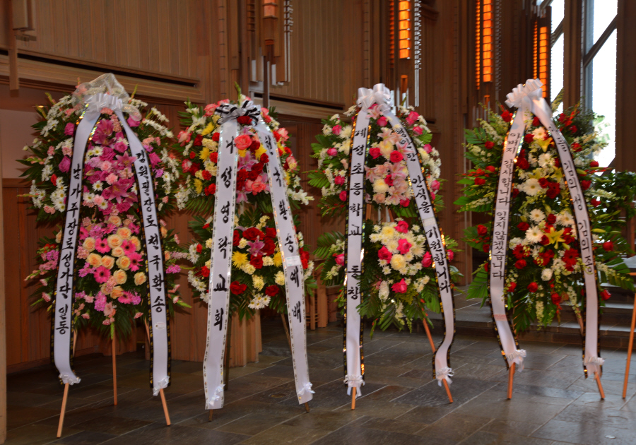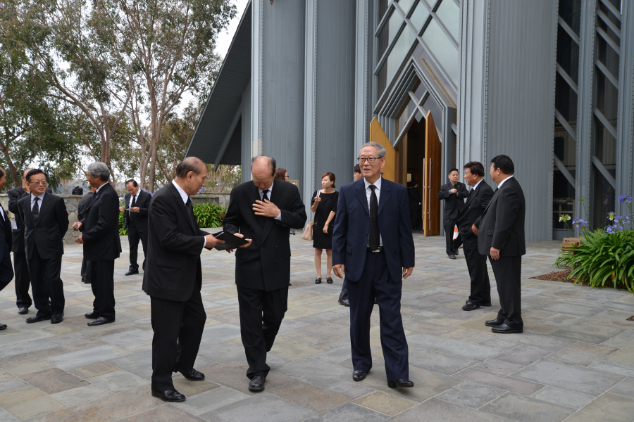 일의 연세로 하나님의 부르심을 받아 이땅 에서의 삶을 끝내고 하나님아버지께서 계시는 영원한 나라 천국에 입성 하셨습니다.우리는 이날 2015년 6월6일 토요일 오전 9 시에 영혼이 이미 하늘나라로 가신 장로님을 이땅에서의 마지막 모습을 보며 하나님께 찬양자로서 삶을 살으셨던 장로님을 하나님께 찬양으로 환송예배를 올려드리기위해 평소 사랑하고 아끼시던 남가주장로성가단 단원들이 Rose Hills Memorial Park SkyRose Chapel에 모였습니다.