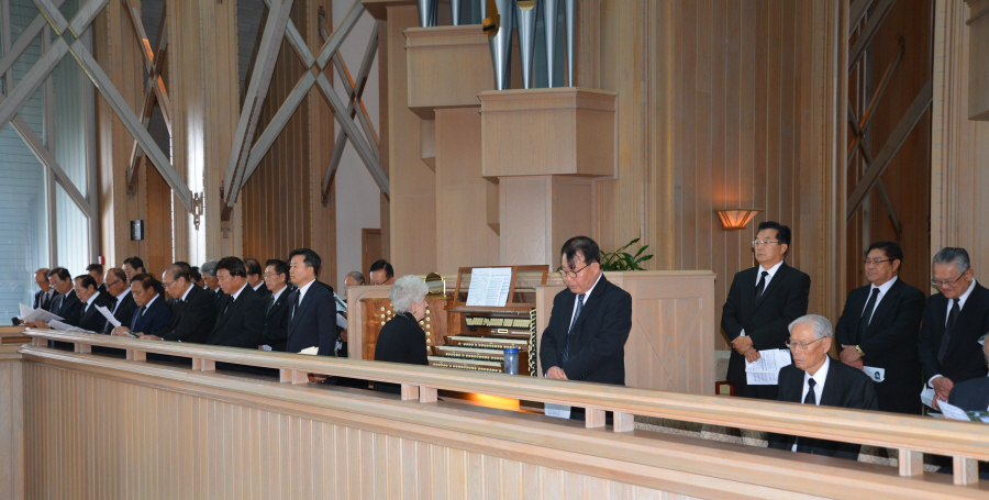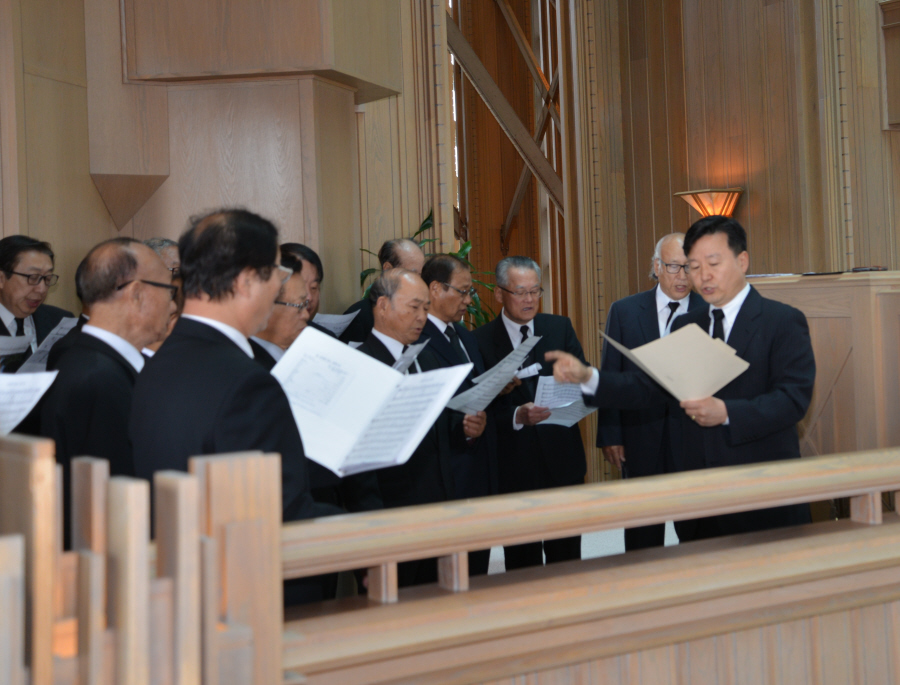 제가 이따금 일본어를 사용하면 장로님보다 5 살이나 어린 제가 일본말을 할줄안다고 대견하다고 늘 말씀해 주시곤 하며 항상 가깝게 지내던 장로님 생각을 지울수가 없씁니다.이제 Bass part의 제일 어른되시던 장로님께서 자리를 영원히 뜨셨습니다.이제 그쪽 자리를 자꾸 보게되고 허전함을 느낍니다 장로님 사랑합니다