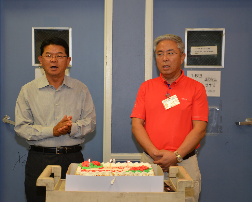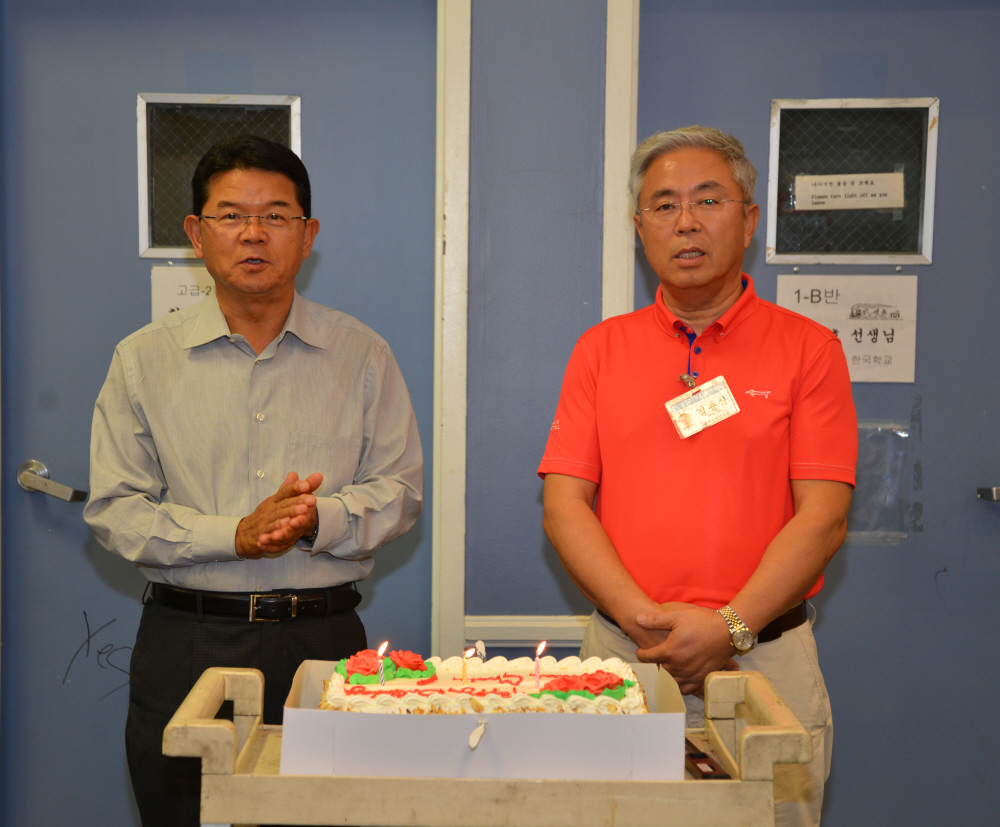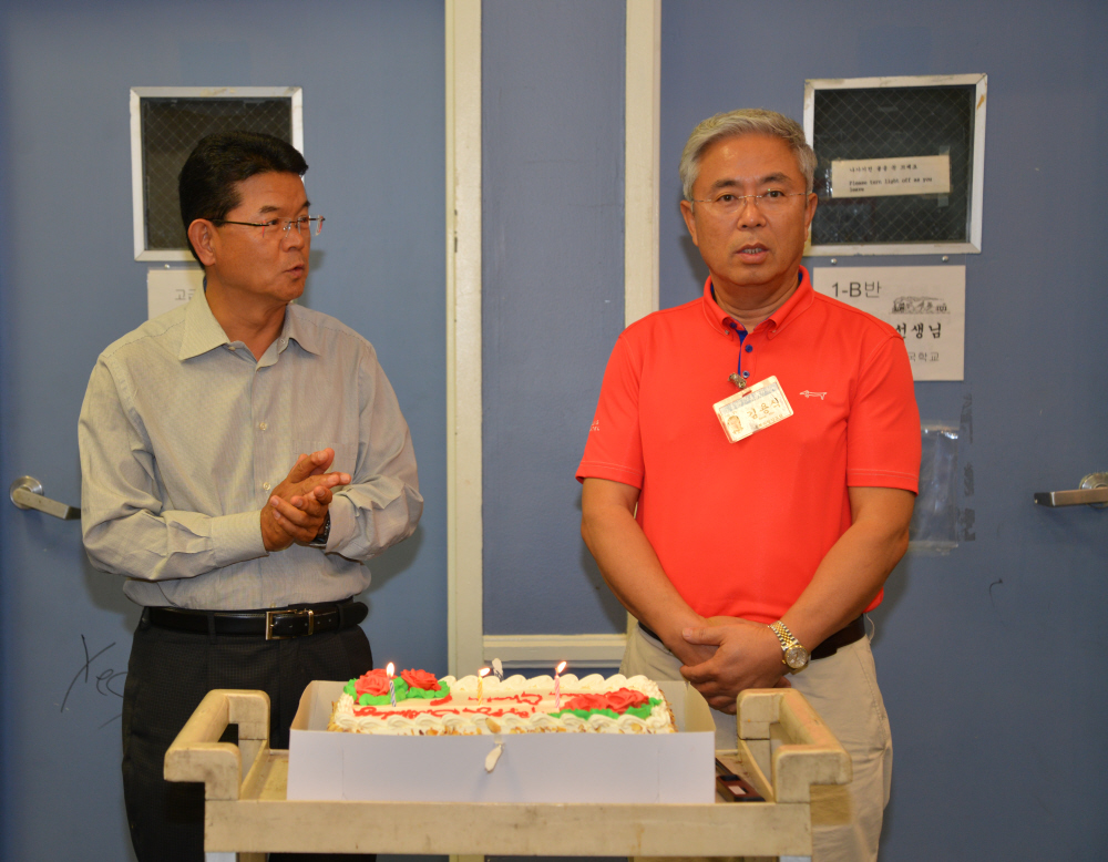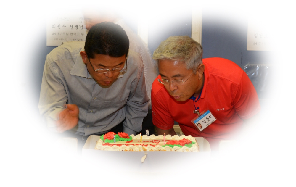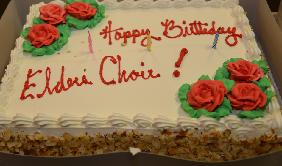 김성일 장로님 자! 축하 노래도 불렀고 촛불도 껐으니 어디 한조각 먹어볼까요? 아이 아니지요 김용식 장로님 왈 축복 기도도 받으시고 또 단원님들께 대접하고 나서 우리도 한조각 먹읍시다. 아 ! 그것 좋은 생각에요 역시 행사 부장이라 머리쓰는것이 달르단말야 ㅋㅋ 추카 추카